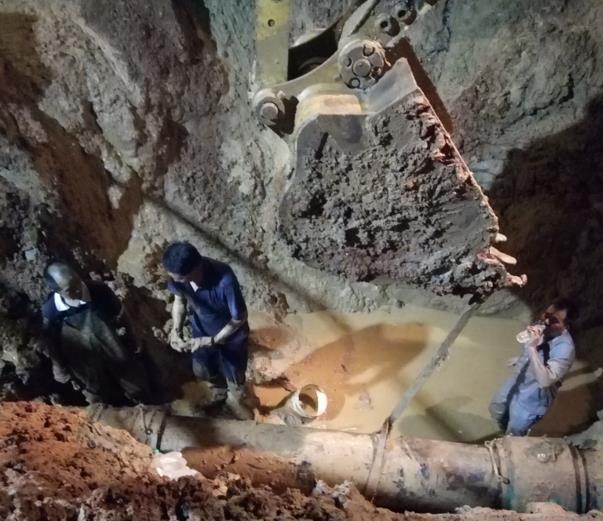 7月11日,员工们正在为暴雨带给盐卤车间水平衡问题发愁时,又一个消息传来。经现场确认,我公司位于药都南大道距露天球场北面200米处的外排冷凝水管漏水。向公司领导及相关部门汇报紧急情况后,盐卤车间紧急部署,启动应急抢修方案。