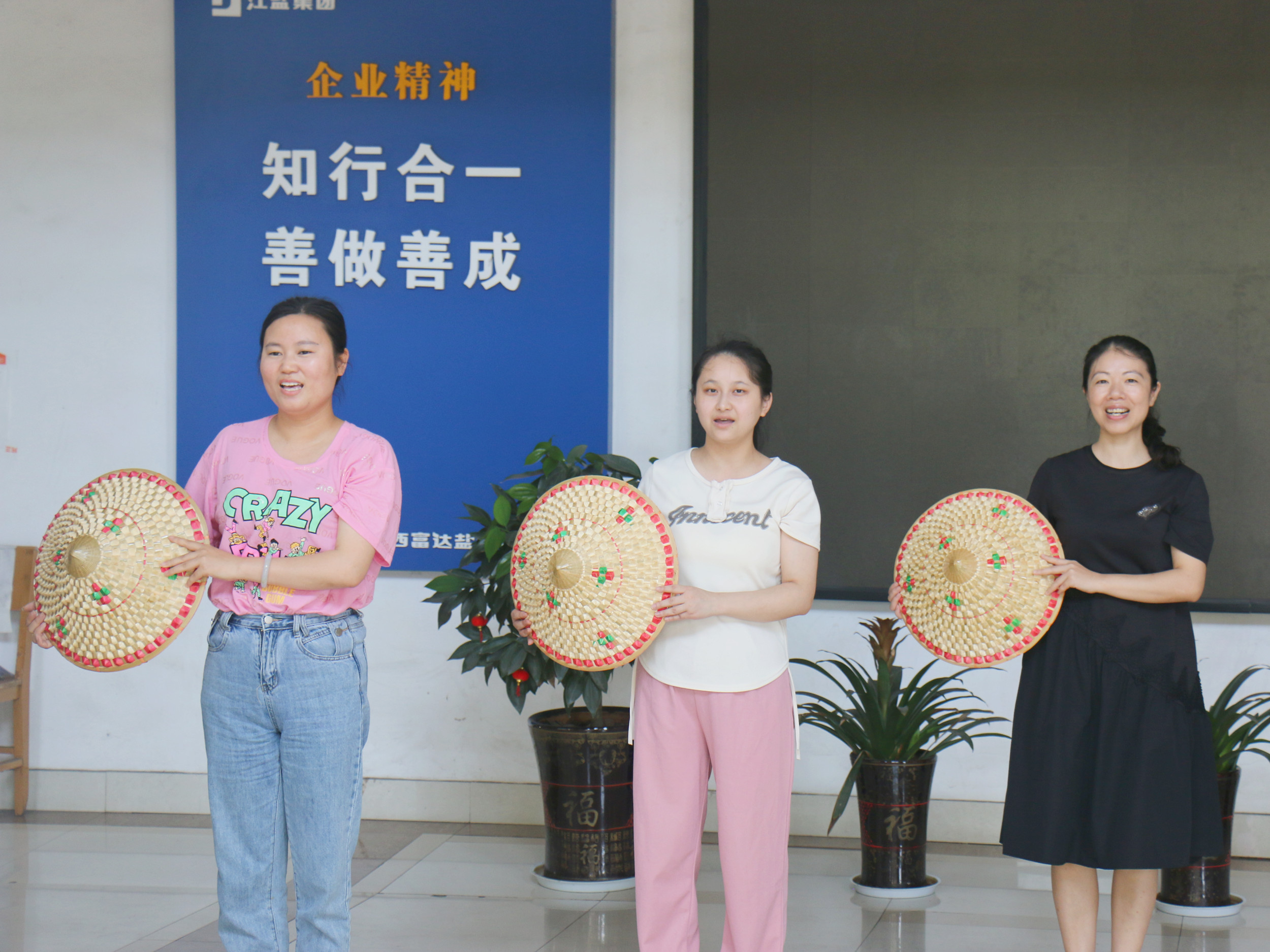 随着文艺汇演日期临近,排练变得更加频繁,参演者们非常重视。除了老师的辅导,他们还每天自愿组织排练。由于需要练习肢体动作,他们把排练场所从室内搬到了办公楼一楼门厅。这样一来,他们的学习成果就变得可见。每天上午11点和下午4点,大家就可以看到一群热情洋溢的女同事们手持斗笠道具,歌唱并表演着,她们有流动的眼神,舒展的动作,大方的姿态和充满活力的神采。她们对歌曲的表现力和感染力不断丰富,让人真切地感受到红色精神的永恒不灭。她们已经成为富达盐化这个夏天最美的风景线。